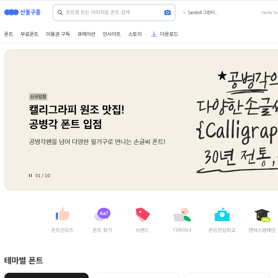 산돌 클라우드(Sandoll Cloud)는 한국의 대표적인 폰트 제작사인 산돌(Sandoll)이 운영하는 웹사이트로, 다양한 한글 폰트를 제공하는 플랫폼입니다. 디자인, 출판, 광고 등 여러 분야에서 활용되는 고품질 한글 폰트를 만나볼 수 있습니다.